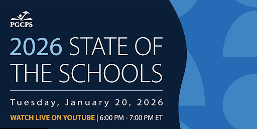 Families are invited to tune in on Tuesday, January 20 from 6–7 p.m. for Interim Superintendent Dr. Shawn Joseph’s 2026 State of the Schools address. Learn about the strategic roadmap for the future of PGCPS and plans to align investments to accelerate student achievement and scale excellence across all 200+ schools in our district.