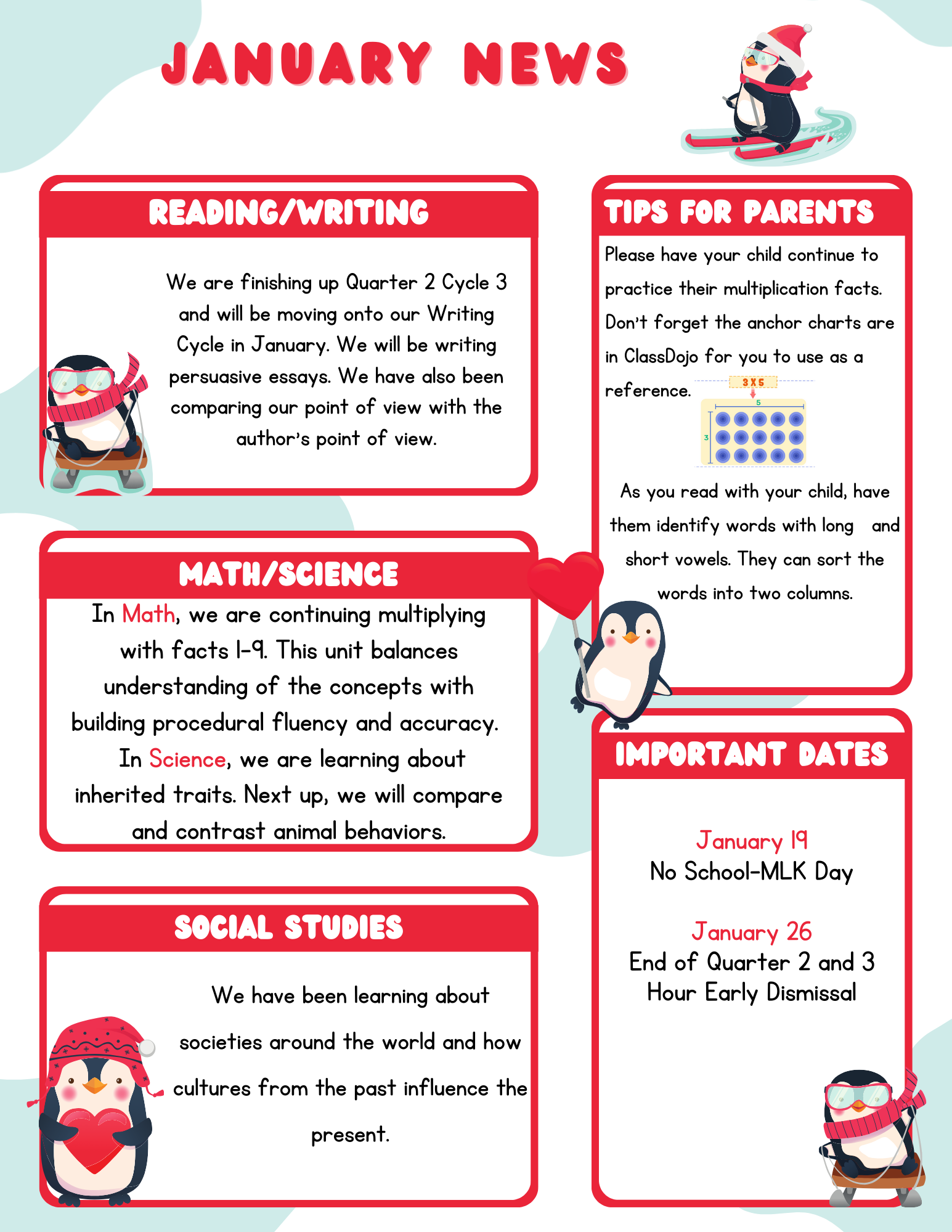 3rd Grade January 2026 Newsletter