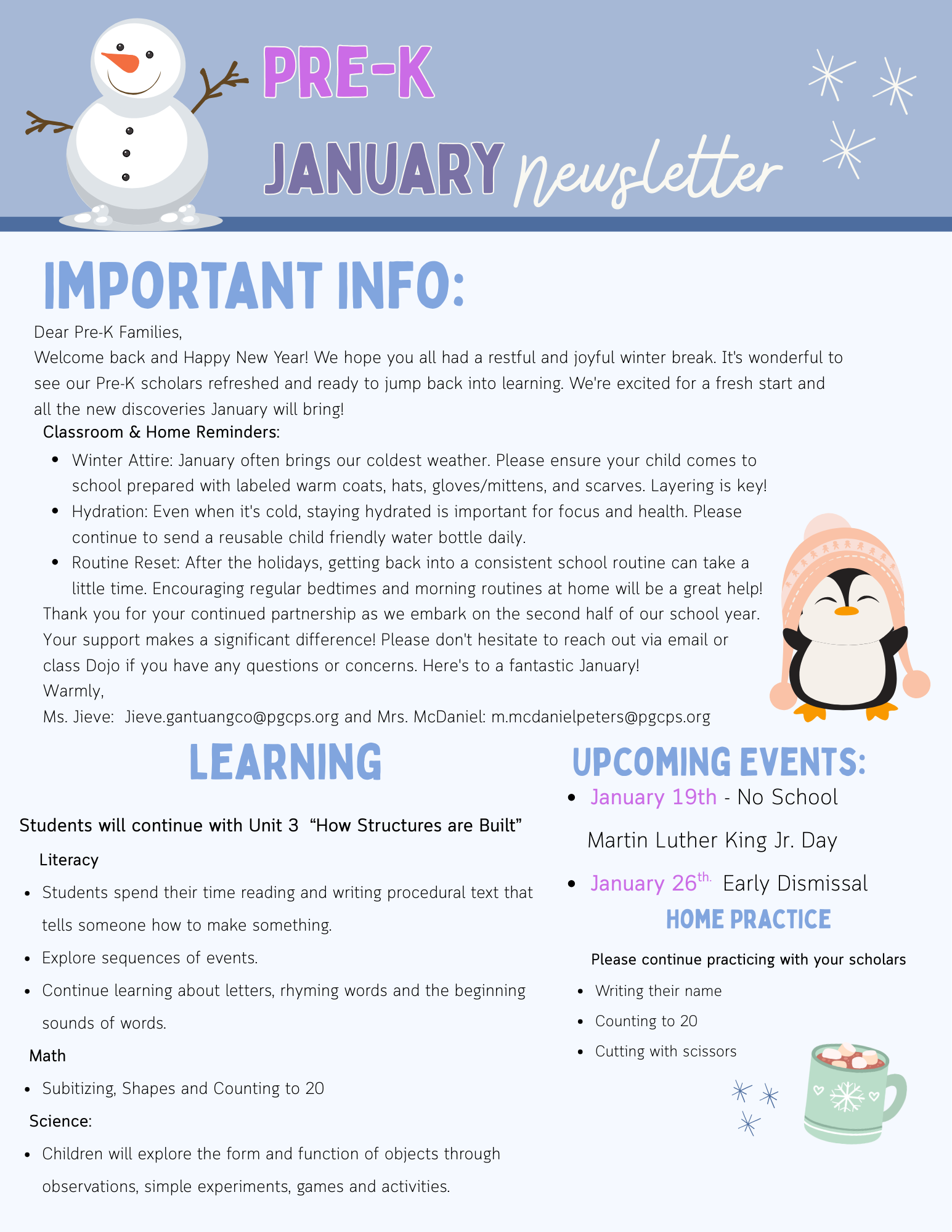 January 2026 PreK Newsletter